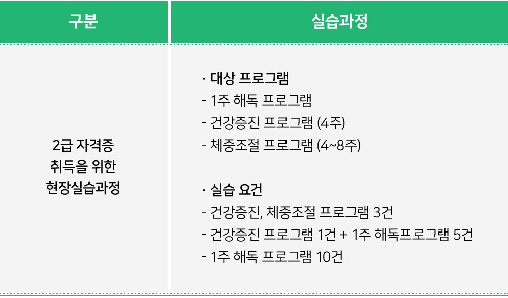 · 현장실습과정 : 1년 이내에 실습과정을 이수해야 함