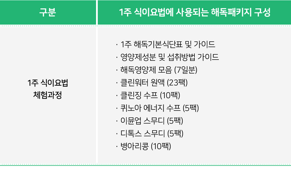 · 1주 식이요법체험과정(해독패키지)